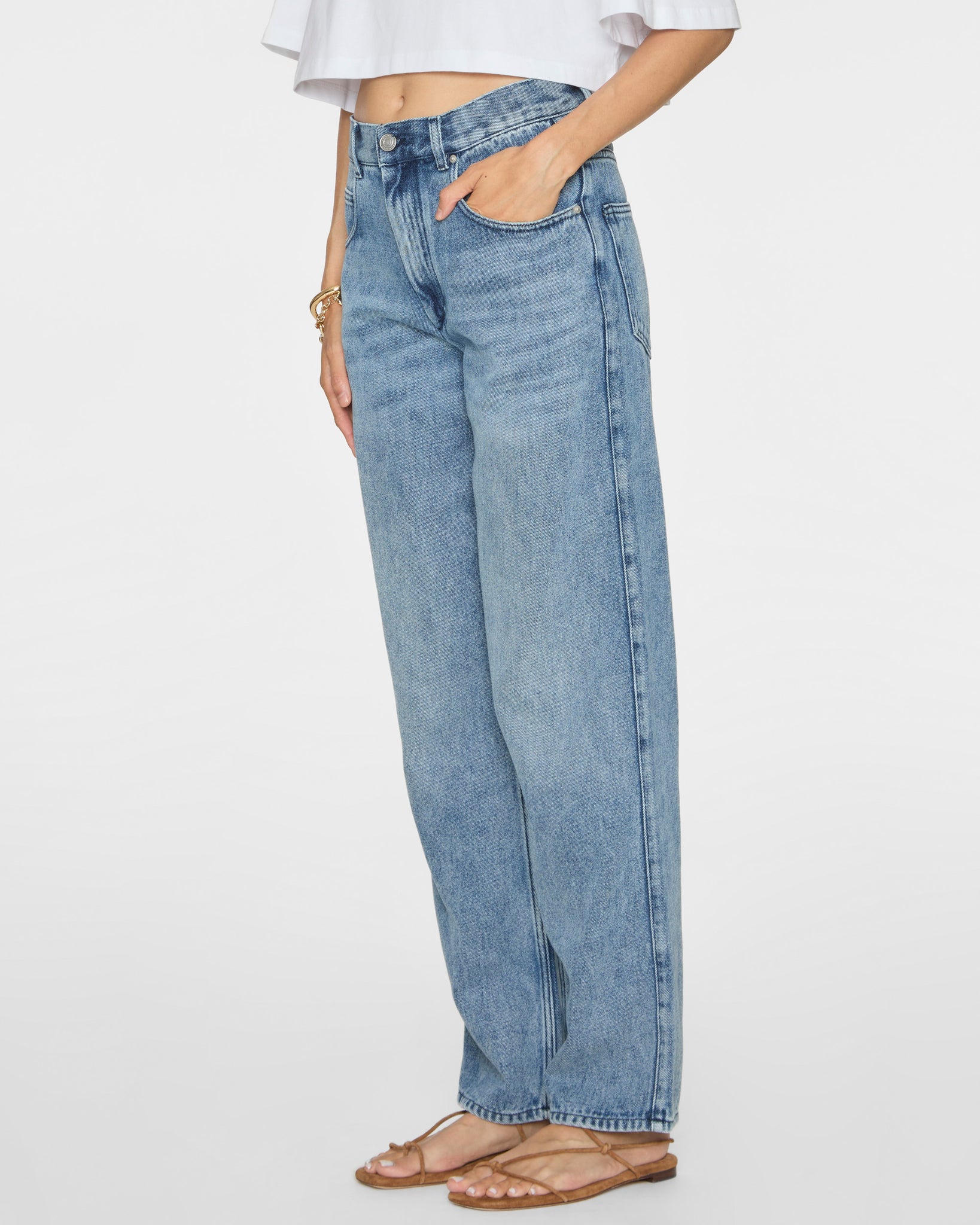 • Medium-rise waist
