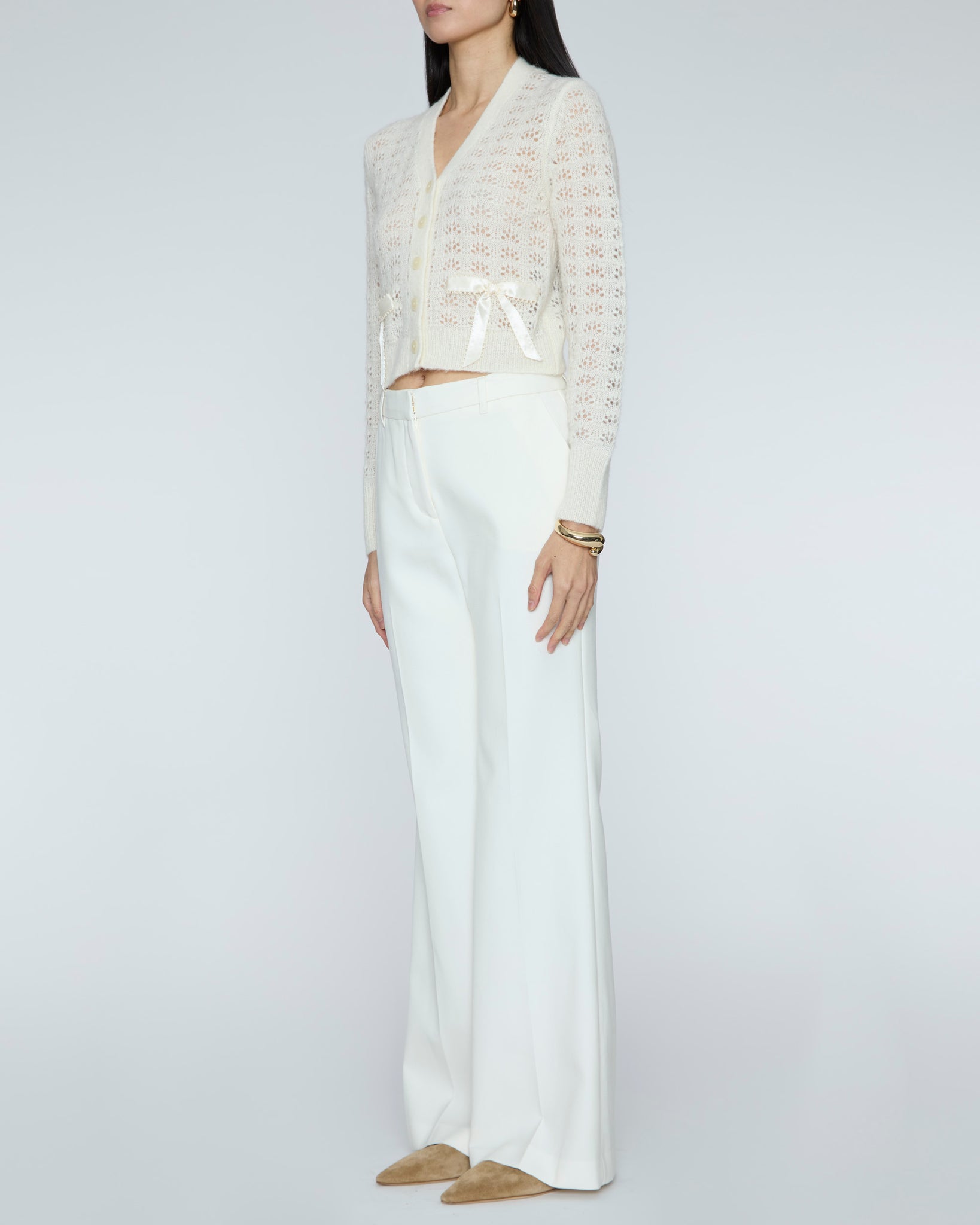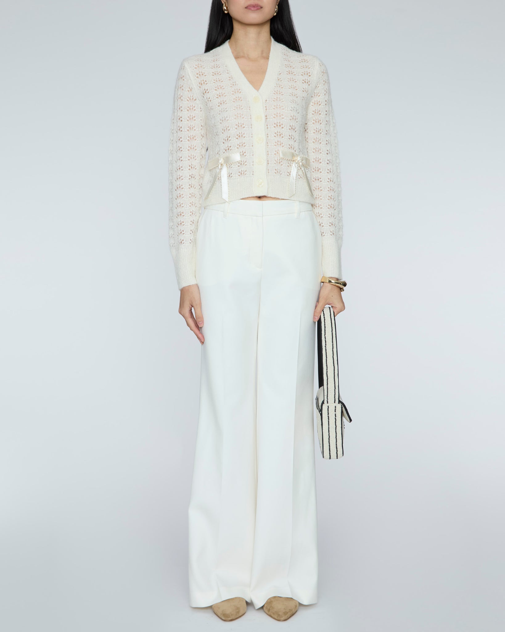 Airy and charming with a cozy feel, this pointelle cardigan adds softness to any look. Lightweight yet warm, it’s perfect layered over dresses or worn on its own. An easy way to elevate everyday outfits.