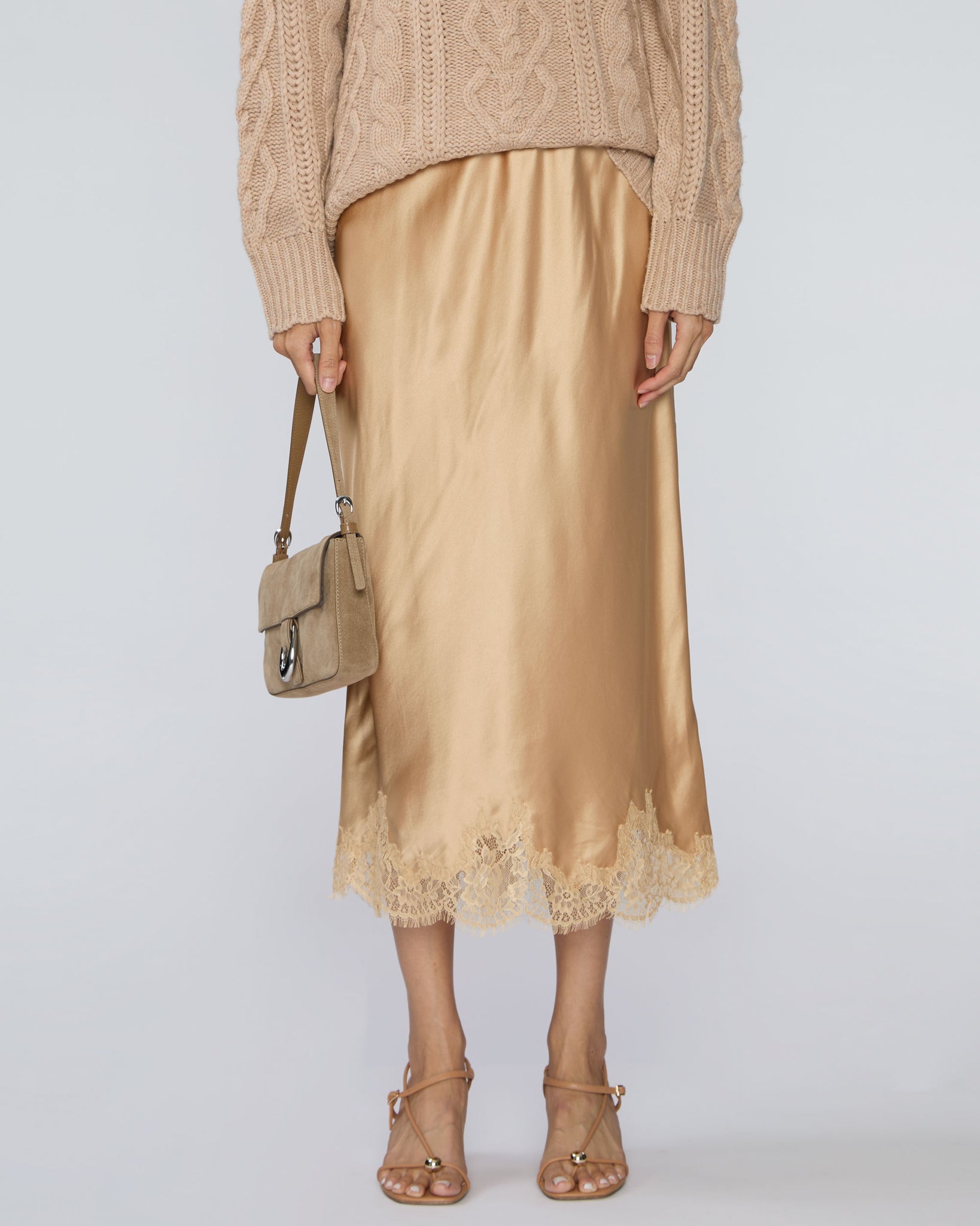 This skirt brings that signature Carrie Bradshaw charm. Soft, fluid, and just a touch daring, the satin glides over the body, defining your shape with ease and confidence. Style it with a fitted tank or oversized knit for an effortlessly chic contrast.