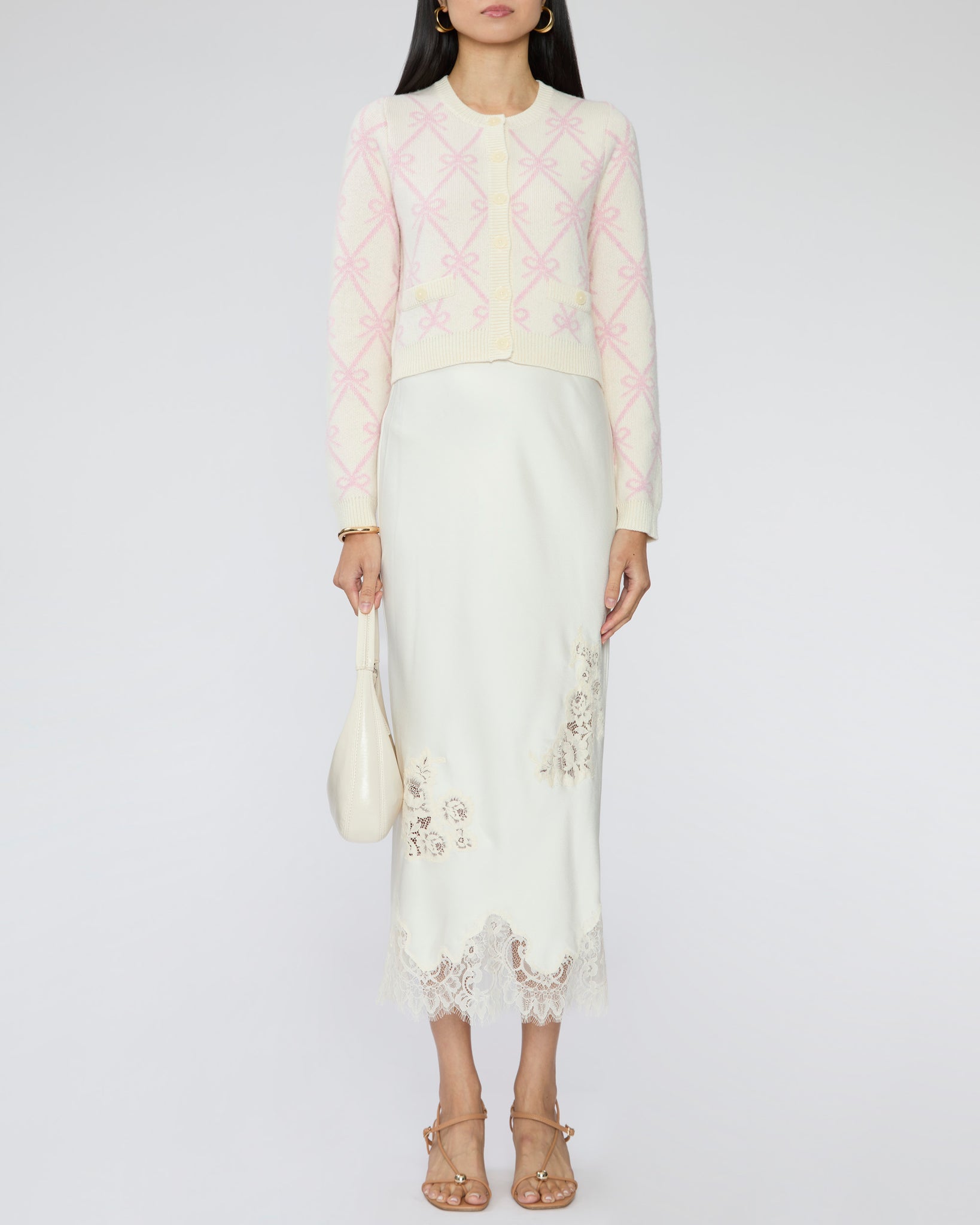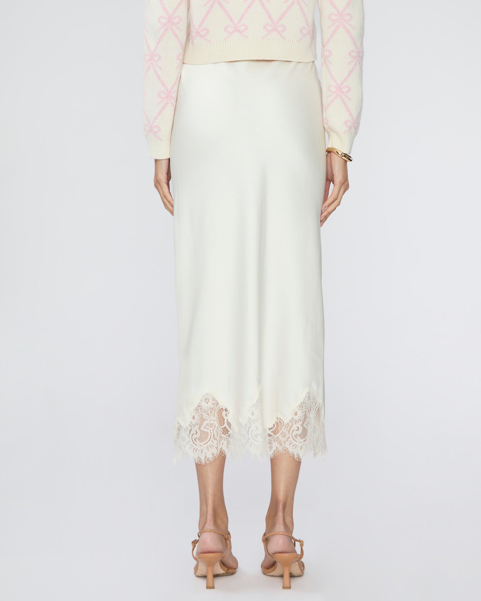 One of our favorite skirts, and yes, we dare say of all time. This piece instantly elevates your look with its soft, refined feel and delicate lace details that exude timeless elegance. Pair it with the matching Lazuli sweater or any ivory top for a chic, monochrome moment.