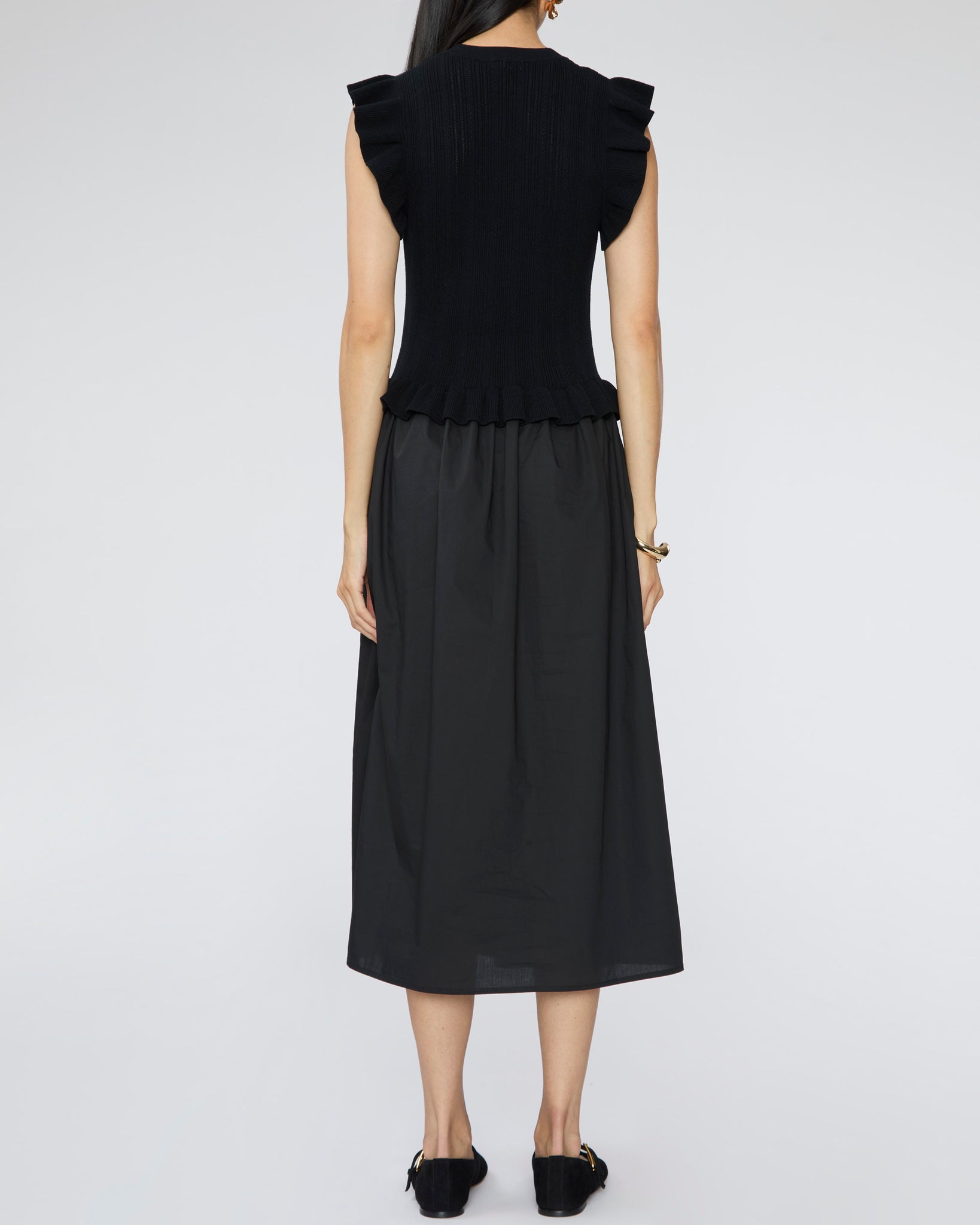 Sweet knit bodice meets a full, swishy skirt for a silhouette that’s equal parts structured and romantic. The fitted top defines your waist while the voluminous skirt gives that effortless hourglass shape. It’s one of those dresses that lets your feminine confidence shine.