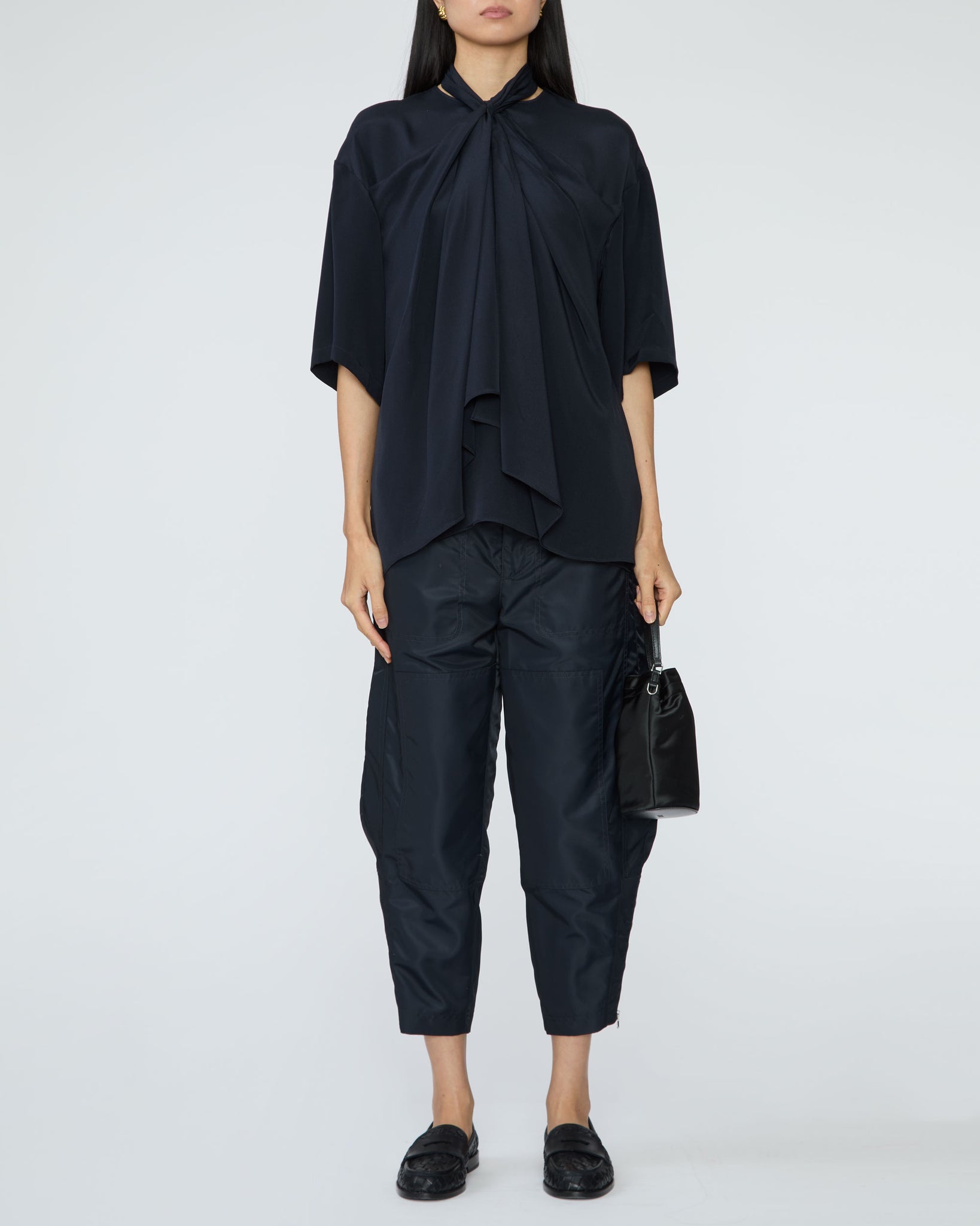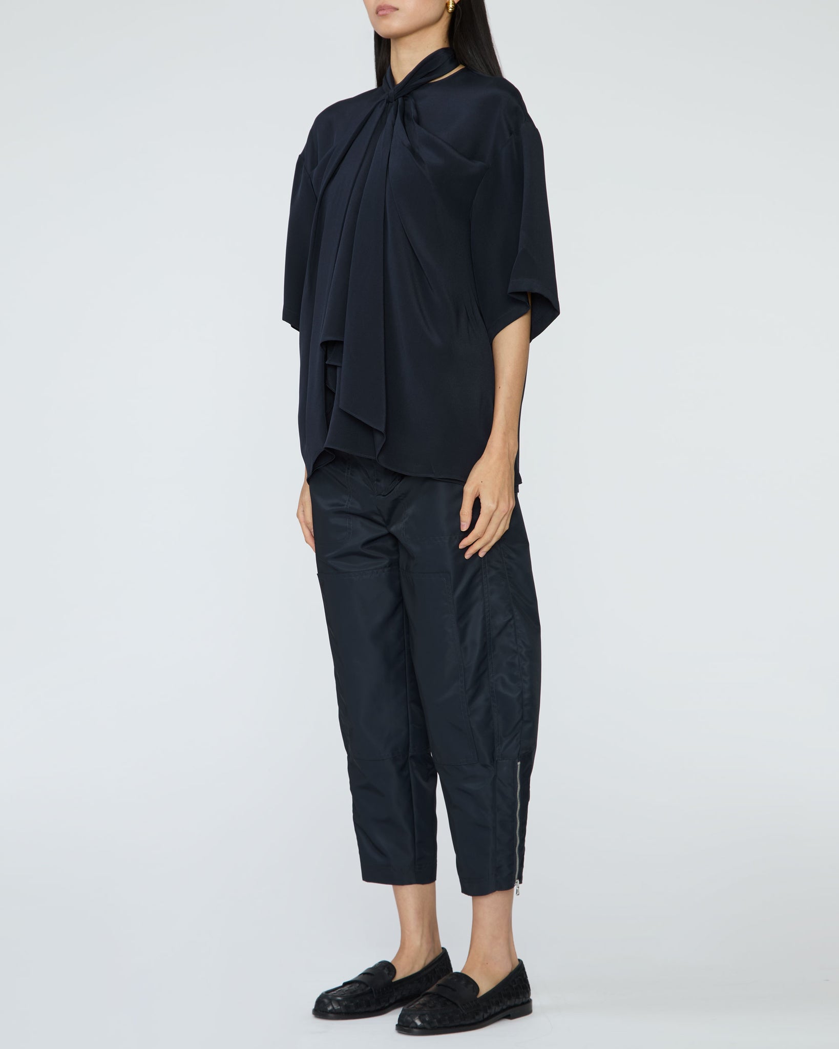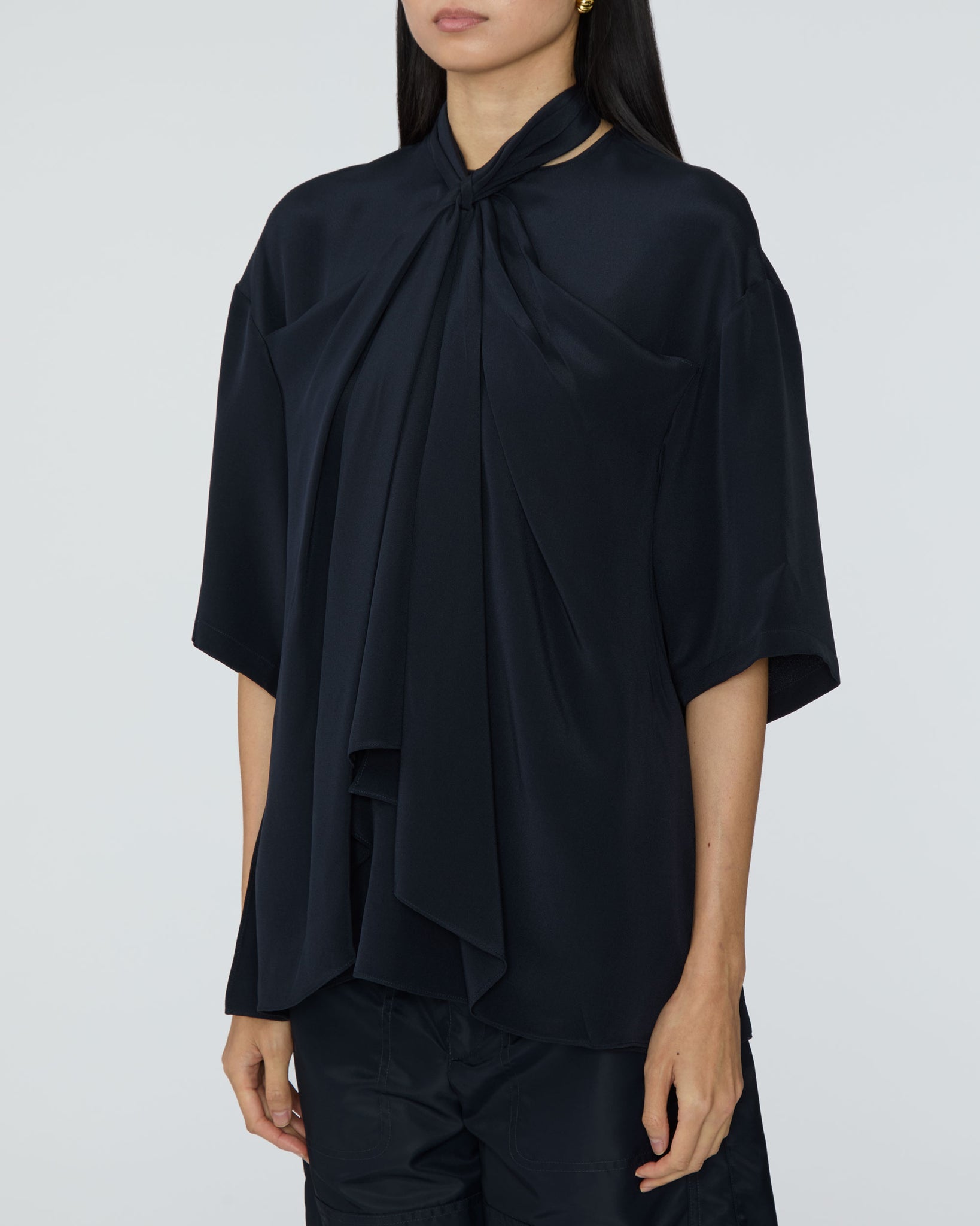 • Draped tie-front neckline